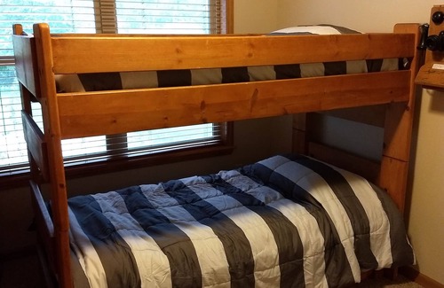 This is a newer, well kept house that will make you feel at home. The living room has a gas fireplace, and has large windows with opportunities for wildlife viewing. Deer, fox, black bears and other wildlife may be seen during your stay right from the comfort of the living room. The kitchen and living room are open, and serve as a perfect gathering place for your evenings sitting around the gas fireplace.