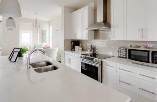 Plenty of space for families, and small groups including outdoor seating at front and back, large kitchen, desk/office space, free wifi and numerous amenties! Large master bedroom with ensuite including shower and bathtub. Two more bedrooms on second floor with another full bathroom with bathtub and shower. Fourth bedroom on main floor with a trundle bed (extremely comfortable) two twin beds!