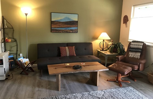 You are invited to our newly remodeled, peaceful vacation rental. You will have all the comforts of home in our cozy one bedroom apartment located in the heart of Mt Shasta with great access to both downtown shops & restaurants as well as to amazing mountain biking, back country skiing & sacred sites for walking & connecting with the natural beauty & power of Mt. Shasta. Our apartment is a modern, clean yet warm & welcoming place to relax and offers a perfect base from which to explore the Shasta area. All natural cleaning products are used for an eco-friendly stay!