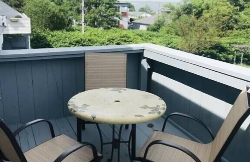 The first floor features an eat-in kitchen with dishwasher, the cozy living room space and the full bathroom. Up stairs, the two large bedrooms, and half bathroom can be found. Each with queen size bed! The vaulted ceiling in the upper level allows for loft bedroom, found at the top of the spiral staircase. Ocean views from the upper deck, and A/C wall units in the living rooms. Enjoy a quick rinse off after a long day at the beach, in the non-enclosed outdoor shower. Then wind down on the outdoor patio with a bite to eat, or a drink in hand, while the warm salty air reminds you why Narragansett is your favorite place to vacation!