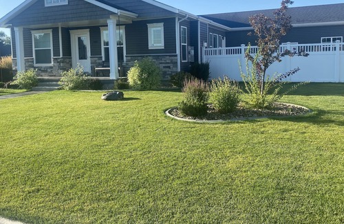 Hot tub inside fenced patio. 2 ovens, huge center island with soda/wine fridge. Very clean and close to all things Idaho Falls. Beautiful manicured yard with a AUTOMOWER. The amazing snake river w/ falls, zoo, theatres, gorgeous green belt with walking/biking paths . Restaurants of all sorts and close driving to Yellowstone national park, Island park and Jackson hole. Everything for winter and summer activities.