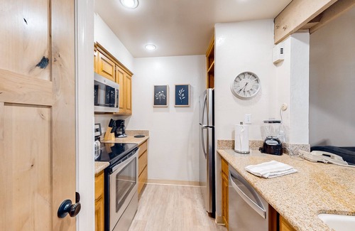 Situated in a quiet neighborhood, your two-bedroom with loft townhome was recently updated with new flooring and paint and boasts vaulted ceilings, a wood-burning fireplace, and a modern, open layout. The full kitchen is well-equipped for prepping your favorite recipes. There’s plenty of space to gather for mealtime, board games, and puzzles between the large, brand-new dining room table and the new living room sectional and recliner. Step out on the furnished balcony amongst the trees for fresh mountain air anytime.