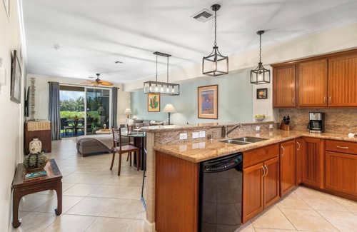 Waikoloa Beach Villas I2 is located on the ground floor of the I Building. Offering views of the golf course and tropical resort landscape. This vacation home is a perfect place for a relaxing vacation!