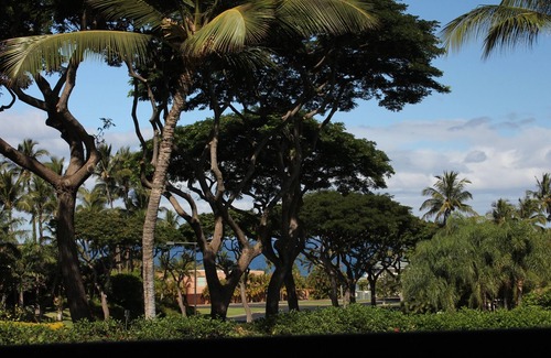Enjoy the Maui sunsets and peek ocean views during your dinner on the large upper lanai or read your book with the tropical breezes at this Maui condo. Vaulted ceilings and rich tropical décor complement the atmosphere surrounding you on The Palms at Wailea grounds and beautiful Wailea Maui Resort area. Your family of six will have room to spread out and relax. This Maui condo has plenty of space for the boogie boards, beach chairs, and snorkeling gear in the large laundry and utility room just off the entrance hall to make your Maui vacation free of clutter in the living areas.