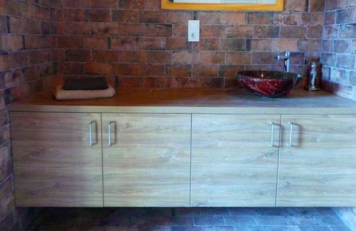 When we renovated our chic farmhouse, we thought of saving and 'reusing' also the basalt stone barn. The building is located behind our main house. We have been mindful of ensuring that our guests have a comfortable stay while retaining traditional elements. We left the stone wall covered inside and reinforced the roof structure with a new peasant ceiling seen from the inside. New sewing system, tubes, tiles, cables, furnitures, equipments, machines... only some furniture pieces are old for giving rustic feelings, ambiance.
