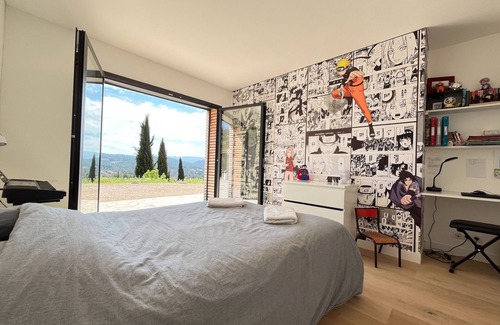 Provencal farmhouse in stone of about 65 m² nestled on a hillside in the heart of gorgeous Mediterranean scenery. Located between the Luberon and the Sainte Victoire, the property is developed on a plot of about 2000 m² with pool secured by removable barriers. You get a breathtaking 180 ° view of the National Park of Luberon and Sainte Victoire. Any opposite, quiet! Le Mas entirely on one floor offers an open kitchen (dishwasher, oven, gas hob, dishwasher, fridge and freezer, Nespresso maker, microwave, toaster ...), living room with TV as well as a dining room decorated with a sofa bed for two. The room has a comfortable double bed and two storage spaces. The shower room has the necessary storage space and a washing machine. Finally, the house has a separate toilet and air conditioning. Two terraces with facilities for eating out; which naturally shaded by an old fig tree and an old climbing vine will give you access to the south facing Mas. Enjoy the pool and sunbeds enjoying a Provencal panorama of sight. The garden has mainly Mediterranean species. On arrival you will find a clean and maintained housing and household linen (sheets, shower towels). Remember, this is a house you will be alone to enjoy this haven of peace!