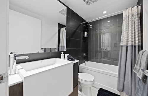 Welcome to Toronto! We are located just steps from the Billy Bishop Airport, CN Tower, Rogers Centre, Metro Toronto Convention Centre, Scotiabank Arena, Ripley's Aquarium, Steam Whistle Brewery, Bike Rides by the Water, Skating at The Bentway, Queen Street Shopping, Trendy Restaurants, Public Transit and More!