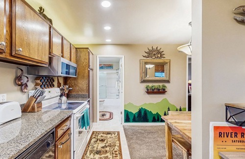 In the sparkling summer months, step outside onto the patio to get the gas grill going for a barbecue in the fresh air. Come winter, prepare your favorite hearty meals in the well-equipped kitchen and sit down to enjoy them in the eat-in dining space. Additional features of the condo include a workspace nook where you can log onto the free WiFi, a comfortable bedroom with its own TV, and two full bathrooms.