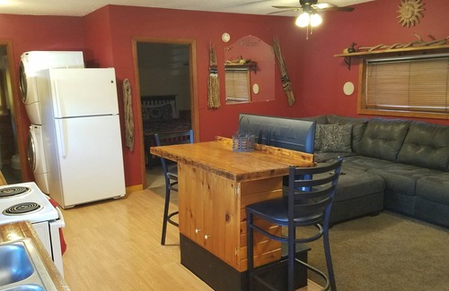Beautiful cozy cabin on Lake Sateetlah. 2 kayaks, outdoor kitchen, 16x16ft deck overlooking lake. Covered parking for a car and motorcycles. Private back yard with flower garden and firepit,bbq grill. Hammock on front porch. Completely fencced in around house. Lots of hiking, fishing in lakes and streams Swimming, waterfalls in the area everywhere. Most extreme motorcycle rd in the world w/318 curves in 11 miles. Pet friendly w/ a 1time fee of 50 dollars. :)