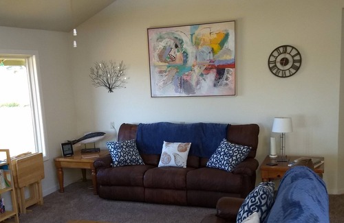 This newly remodeled home is walking distance to the beach or you can use the private gate pass and drive to within a few steps of the sand. The house is located across the street from Pomo Lake with walking trails and wildlife and bird viewing.