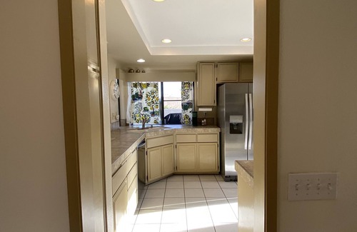 There are two bedrooms, each with its own full bath and television. The primary suite has a king-sized bed and the second bedroom has two queen-sized beds, which are brand-new as of January 2024. New and high-quality bedding and towels will make your stay easy and comfortable. This condo feels luxurious. Beautiful, stunning light fixtures from Restoration Hardware. There are two outdoor patios with seating and mountain views. This includes a walkout patio with a gas grill. Cook’s kitchen with brand-new stainless steel pots and pans and brand-new knife set. Herbs and citrus trees on the property - pick a grapefruit or tangerine for breakfast and grab a handful of rosemary or thyme for dinner. Washer and dryer in condo. Free parking in the carport or garage. The condo provides access to three different swimming pools and hot tubs. This condo is loaded with the best games to play and books to read. In addition to the many great hikes around the Santa Rosa and San Jacinto Mountains, the Ironwood community provides a private hike you can easily walk to.