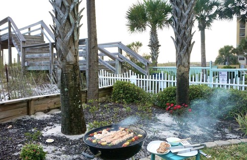 Step outside onto your own large private patio with beautiful Polywood furniture. Enjoy a quiet early morning cup of coffee or a relaxing nap on the warm sun. If grilling is your pleasure, you've come to the right place. Pull the Weber grill onto the large grassy area and have your own cookout preparing steaks, burgers, or fresh seafood from the local seafood markets. Plenty of space for your little ones to run and play on the lawn while you relax on the patio. You can also store any extra Beach gear here instead of having to store it in your condo or car.