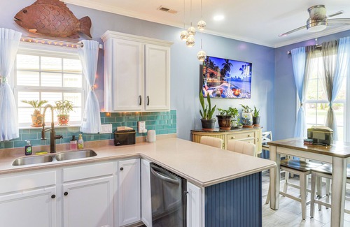 ‘Boro Breeze’ brings coastal calm and dreamy sunset glows to a landlocked location. This Murfreesboro vacation rental’s colorful and spacious interior, modern amenities, and grassy yard make it a cozy home base where you can rest and unwind. Lakeside fun, downtown drinks, and MTSU games are a breeze when you stay at this 2-bedroom, 1-bathroom home.