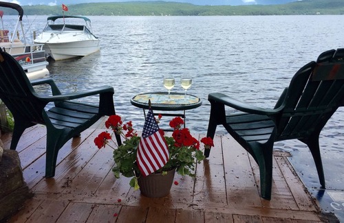 Walk to Dockside Landing Marina to rent a boat to explore the majestic beauty of all 32 miles of Lake George.