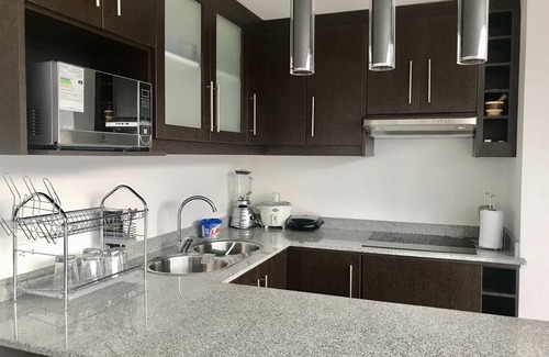Luxury apartment in the North of Quito, you can take as a reference in maps "Liceo la Alborada", the sector is surrounded by tourist attractions, shopping centers and supermarkets. The apartment is furnished and with an incredible view of the city. The building has common areas such as gym, terrace (smoking area) and bbq. The building is near the stop a bus stop "metro".