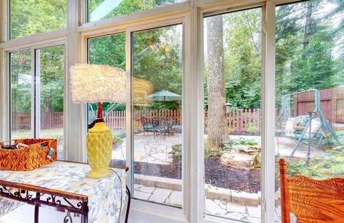 Only 5 miles from the IU stadium, this 1700 sq. ft french country cottage will have you feeling like you are right at home. Situated on an acre, this single level brick abode has all of the amenities of home, an outdoor hammock + patio, beautifully remodeled kitchen/bathrooms and sunroom with daybed for relaxing. The master bedroom has a brand new king size mattress & 50 inch tv with private bathroom including his+her sink and shower. Soak in the vintage claw foot tub and enjoy a glass of wine.