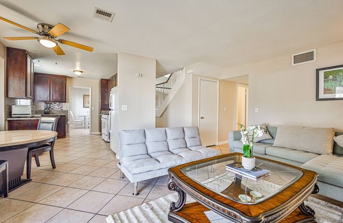 4 bedroom with 1 King bed and 3 Queen beds 2.5 bath 2 car garage inside parking and 4 outside parking space with a BBQ backyard home is in a very friendly neighborhood. 10 minutes to Strip, 2 minutes to public park, 3 minutes to shopping center, and many more.