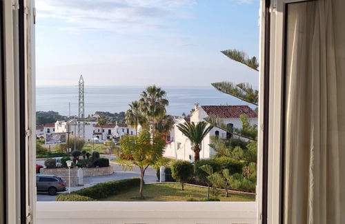Jardines de Nerja 18 - Sunny Charming 2-bedroom townhouse in NerjaA charming two bedrooms 84m2 townhouse in the well maintained Jardines de Nerja urbanization, next to Capistrano Village. The townhouse has got two large terraces, direction to south and with spectacular views of the sea and Nerja. Fully equipped kitchen, gas BBQ on the roof terrace, TV with international channels. The Urbanization has got a very nice pool area and beautiful garden.The direction of the town house is straight south overseeing the sea coast from both ground terrace living room, master bed room and roof top terrace Just 2.2km from the city center of Nerja. 1.6 km from Burriana beach and 2.1 km from Carabeillo beachThe urbanization has a large outer garden area and a gated inner garden area. In the inner area there is a 25 m long swimming pool available for the 34 houses in the community.Swimming pool is open from March through Nowember and 8am to 8 pm . The community has its own parking area available for the rental family. Just 50 m to the entrance of the house. Easy access to the house through the ground floor terrace.Very cozy living room, equipped with new furniture and with a 55inch new SAMSUNG Smart TV with international channels.Many international TV channels are available on the TVFully equipped kitchen with all appliances new 2023.One big bathroom adjacent to the bedrooms and one toilet at first floorTwo large terraces with direction to south and with full sea views, Roof terrace has a new gas barbeque. A new wash machine is available on the roof terrace.City bus stop just 200 m outside the community take you to Burriana beach and city center.The 5G Wi-Fi connection is free,Air conditioning in living room and bedrooms. All doors and windows new from 2023 and with double glazing.Jardines de Nerja is a very quiet urbanization where you can enjoy its pool and gardens and a fantastic sea view