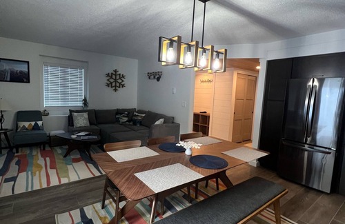 This clean, comfortable, newly remodeled updated 1st floor -end unit with private entrance has 2 bedrooms / 1 bath, sleeps 7 (1 queen sized bed, 1 twin over full bunk bed & 1 convertible sofa), plenty of gear storage, a gear dryer, full kitchen with stove/oven, coffee maker & toaster, pots/pans, dishes & silverware/cooking utensils and an in-unit washer/dryer to provide all the amenities of home.