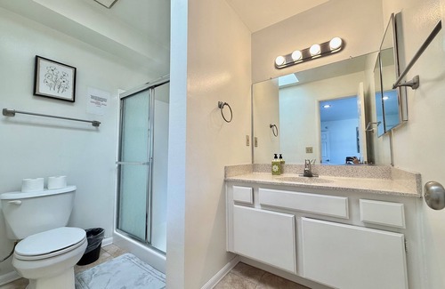 The second bedroom includes a cozy queen bed and its own full bathroom, offering maximum privacy for all guests.