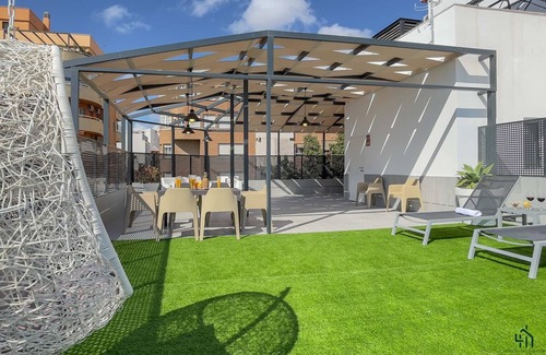 This fully renovated apartment accommodates up to 6 guests and is situated in the quaint neighborhood of Málaga, just a 15-minute walk from the city center. It boasts two bedrooms with double beds, a living room with a double sofa bed, two bathrooms with showers, and a kitchenette equipped with all necessary utensils and appliances. Additionally, the apartment features a shared rooftop terrace, perfect for enjoying the city views.