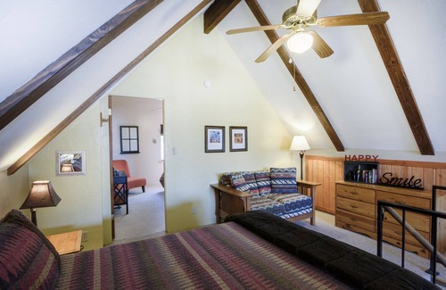 Nestled at the top of the stairs is The Jerome Room overlooking the Great Room below. Cozy up in the queen bed or the reading nook and plan your day's adventures.
