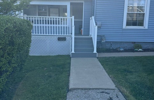 Our quaint 4 season home has all the amenities you need for a getaway by Lake Erie. Can potentially sleep 15. 1 spacious master suite with queen size bed and large master bathroom with walk-in shower, 2 upstairs bedrooms each with a queen sized bed, 1 upstairs bedroom with 6 single bunks great for the kiddos, upstairs bonus room with smart TV and futon that can sleep 1 more if necessary, 1 full bathroom upstairs with shower, 1 full bathroom downstairs off the main living space with jacuzzi tub and shower, spacious living and dining area with smart TV and game area, 1st floor sun porch with a private feel and queen size sofa bed, fully equipped kitchen, alcove dining area off kitchen with a Seek-and-find" painted on the surrounding walls, spacious side porch, generous parking that will allow up to 4 cars.
