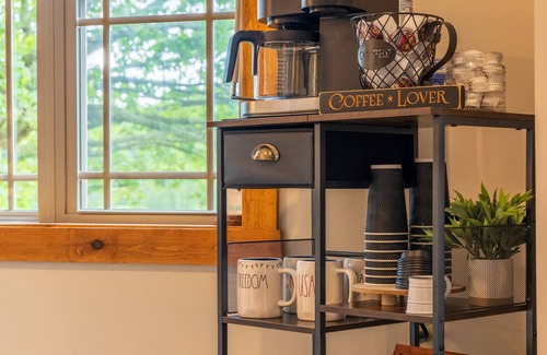 This cabin is 1,500 sq feet of pure comfort and relaxation. Our 3 bedrooms each have queen size log beds with inviting bedding for a peaceful nights rest. 2 full bathrooms. Full kitchen and grill for all your cooking needs. Spacious back porch with a 6 person hot tub. Coffee and Hot Chocolate bar to warm you up on these cool Spring days and nights. with lots of extra homey touches. You're sure to have a great time!