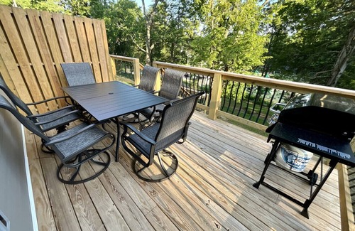 Justify Cottage is a roomy 3BR/3BA retreat in downtown Versailles, perfect for groups or families. Minutes from Keeneland and the Bourbon Trail, this home offers space and comfort with three bedrooms and full baths. Relax on the porch, enjoy views of Big Spring Park from the back deck, and walk to restaurants, shops, and historic sites. A wonderful base for bourbon tastings, racing weekends, or family getaways.