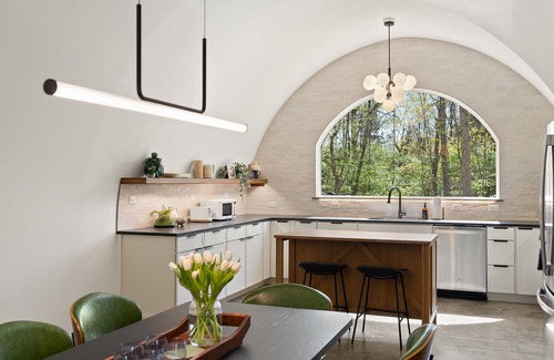 Escape to this one-of-a-kind hillside retreat in west Knoxville, where nature meets design. Built into the slope and blanketed in grass, this earth-sheltered, dome-shaped home offers 3 cozy bedrooms and sleeps up to 10 guests. With its curved architecture and natural insulation, it's as peaceful as it is unique. Enjoy the quiet forest setting, outdoor fire pit, and modern comforts—all tucked into the landscape for a truly unforgettable stay.