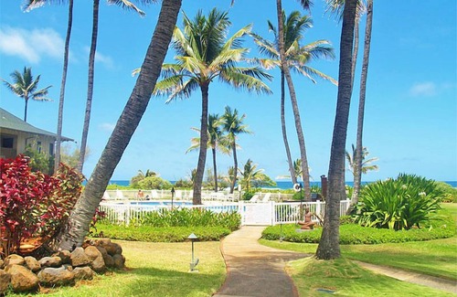 Take in mountain views of Sleeping Giant from the downstairs bedroom, kitchen and front lanai! Lounge by the heated pool or play some tennis. The extensive lawn area allows ample space for outdoor play time. Take a long walk on the white sand beach that extends for 2 miles or use the hike and bike trail that goes right past the condo. Hike the trails at Sleeping Giant or kayak the Wailua River, both nearby. A 7-minute walk brings you to Lydgate Park which has two protected swimming areas within Wailua Bay: a shallow pool for children and a larger deeper pool for adults with a lifeguard. Both pools are protected from ocean swells by rock wall barriers. We love to snorkel here! The park also has a large playground, covered picnic tables, public parking, bathrooms, showers and a large grassy area perfect for Frisbee or kite flying. Across from the swimming ponds is an outdoor walk up bar and grille, Mamahune's, over looking Wailua Bay.