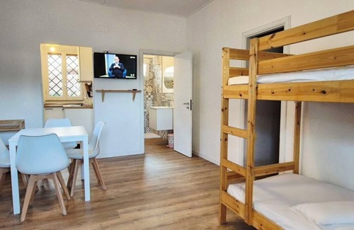 L'appartamento è composto da angolo cottura separato, 1 camera da letto, bagno con doccia walk-in, water, bidet, lavabo, salotto dotato di letto a castello e TV. Aria condizionata centralizzata, lavatrice e wifi.