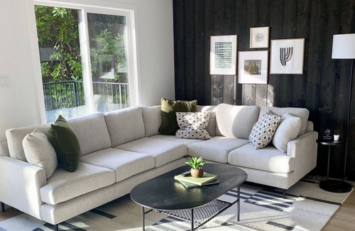 This open concept 1,600-sqft home is beautifully renovated to create a tranquil home away from home. The main floor hosts one bedroom with a queen bed and a twin bed trundle, and a small workspace. The bathroom downstairs has a full bathtub and shower.