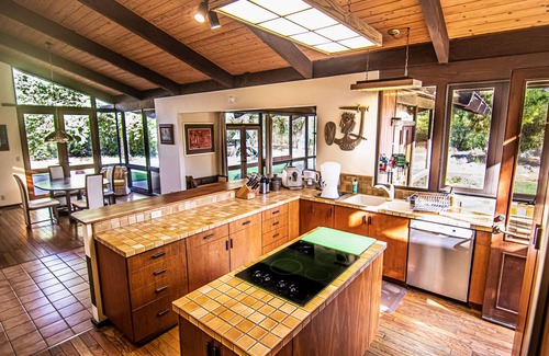 Amazing redwood Mid Century Modern custom home on the Kaweah River, floor to ceiling windows throughout. The kitchen boasts large countertops, custom cabinetry, a bar and a subzero refrigerator. A large dining area w/h custom built cabinets and tons of natural light. Each bedroom has it's master bath. Home is located on 6 acers, on the main fork of the Kaweah River. Only 4 miles from the Park Entrance and 10 minutes from shops and restaurants. Private rivers access!