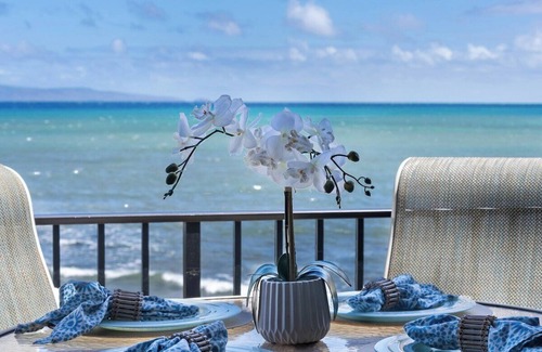 -Furnished direct oceanfront lanai with spectacular ocean and island views