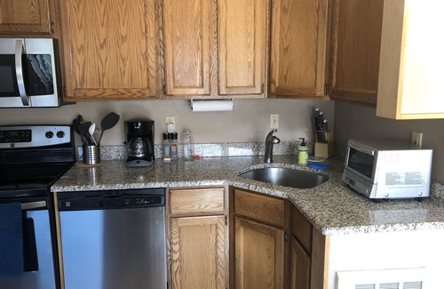 The condo is fully equipped and recently renovated. Electric fireplace, big screen TV, and more.