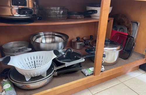 The KITCHEN has granite countertops and stainless steel appliances including a Professional Series stove, microwave/hood combo, dishwasher, and refrigerator. Appliances include coffee pot, blender, toaster with warmer, and a hand mixer. Ready to cook with a collection of pots and pans, bowls, knives, silverware, and service for 8 Corelle dinnerware Set. Four bar stools for kitchen area seating. There are a variety of spices and individual size condiments, salt and pepper, cooking spray, etc. Garbage bags, dishwasher packets, dish detergent, and other cleaning supplies are provided. Remember to bring coffee if you are a coffee drinker!