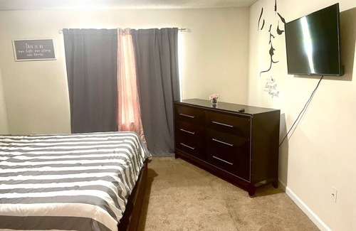King suite 3BDRM 2Bath 5 beds 15 mins from downtown Atl & Mercedes-Benz Stadium has 3 Bedrooms , 2 Bathrooms, and max occupancy of 8 people. The minimum rental for this property is 1 nights, but this can change depending on the season you plan on staying. Previous guests have given good rated it, and VRBO labeled it a top-rated Apartment because of the excellent services rendered by the owner or manager of this Apartment, and has consistently provided great experiences for their guests. Most families or guests that use it recommend it to their friends and some of them are repeat guests. Apartment has a friendly neighborhood, and the Clarkdale has interesting places to visit. If you want to learn more about the Apartment in Clarkdale, such as places to visit and things to do nearby, you can check below to learn more.