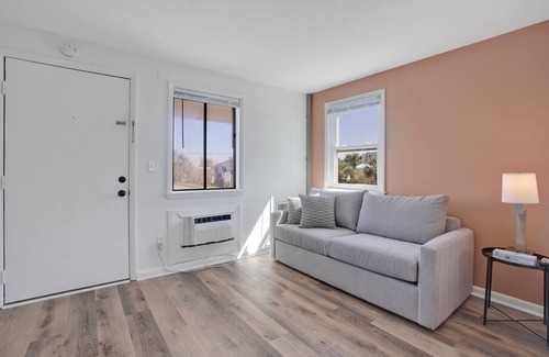 This listing includes one king bed, a queen pull-out sofa bed, microwave, mini fridge, RoKu TV, Keurig coffee maker, all linens (not beach towels) and private bathroom. NOTE** Not all units look the same** Guests have access to 2 (seasonal) pools on the property and a lounging patio with propane firepit, BBQ grill and outdoor games. The beach and boardwalk are about 2 blocks away-just a short walk! Restaurants are within walking distance along with local shops and must see attractions. These rooms are not pet friendly.