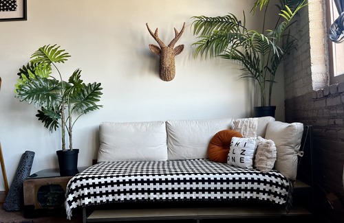 Experience the epitome of urban-boho chic in this stunning loft located in the historic neighborhood of Corktown. Boasting high ceilings, tasteful decor, and ample natural light, this space is ideal for both relaxation and productivity. The picturesque Detroit Riverfront is within easy walking distance, while the Canada bridge and downtown core, including casinos, are just a short drive away. Self-entry check-in and gated parking are available for guests convenience.