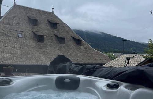 Our Jacuzzi sits on the terrace coming off the lounge. Lovely after a long day of skiing , cycling or walking.
