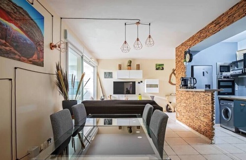 ➤ Do you need accommodation near the city center of Montpellier? Stay in this modern, comfortable and functional apartment. Its strengths? ➞ Its ideal location in a quiet residence close to many amenities. ➞ Its warm decoration. ➞ Its open and equipped kitchen. ➞ Free and secure Wi-Fi. ➞ Its access to a secure parking space. ➞ Its quiet neighborhood. ✖︎ Loud parties and parties are not compatible with our announcement. ➤ Our accommodation is a cozy apartment in the heart of a beautiful residence and close to the Odysseum shopping center. Its surface and its functional layout offer you all the necessary comfort. It is composed of two independent bedrooms. ➤ The accommodation is suitable for four people who wish to enjoy access to the beaches of Montpellier, while being close to all amenities (places of tourist visits, activities, shops...) ➤ The lounge area is very cocooning, tastefully decorated and equipped with a comfortable sofa. ➤ The kitchen is equipped with hotplates, pots, crockery, dishwasher, microwave, kettle, oven, coffee maker, utensils... We leave at your disposal basic condiments such as: Sugar, salt, pepper, coffee... For your comfort on your arrival. ➤ The sleeping area is made up of two peacefully decorated bedrooms with hotel quality bedding and a large wall cupboard. ➤ Our shower room has all the necessary equipment to satisfy you. The toilets are independent. We provide you with a welcome kit: A small miniature attention consisting of shower gel, shampoo, conditioner. ➤ Towels are at your disposal. We also provide all linens. ➤ The terrace is pleasant and perfectly exposed, it is equipped with garden furniture and its plancha, to offer you a real moment of relaxation. Wi-Fi is free and secure. You can work from home with complete peace of mind if needed. ➤ The accommodation is completely NON-SMOKING. Penalties may be applied if there is a smell of smoke in the apartment when you leave. ➤ The cleanliness of the accommodation is one of our main requirements. We are particularly demanding on hygiene standards in accommodation in order to guarantee you a quality stay upon your arrival. BOOK NOW BEFORE IT'S TOO LATE... → For an independent arrival, the accommodation has a key box. Also, we offer 7/7 assistance to ensure your peace of mind. For the organization of the check-in you will receive a message before your arrival. If you have any questions, we are at your disposal. ⫸ A private parking space is available⫷
