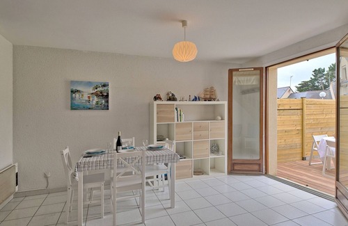 Terraced house "La Criée". 500 m from the centre of La Turballe, in the residential district, excellent location: right in the centre but still quiet, 500 m from the sea, in a cul-de-sac. Private: property 40 m2 (fenced), garden with lawn, parking space n 7 at the house at 100 m. Shop, bus stop, sandy beach 500 m, indoor swimming pool 3.5 km. Nearby attractions: Port de pêche 600 m, Guérande-La Brière 8 km, Pornichet-La Baule 15 km, Le Croizic 18 km, Nantes 90 km. Hiking paths: GR34.