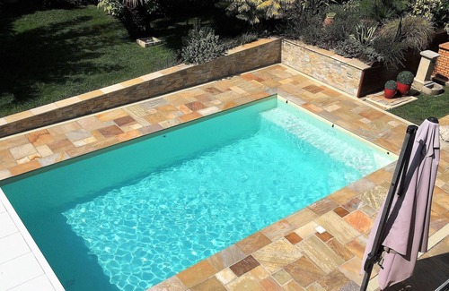 The heated pool is equipped with an electric submerged rolling shutter for the safety of children. The water is salt for better tolerance, the bottom is flat, the water depth is 1.60 m with a bench of 60 cm for children. Corner stairs, solar shower.