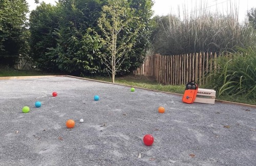 On the ground floor: a living room with kitchen, living room and lounge, a games room with television, a laundry room with sink, a separate toilet with washbasin. Upstairs: a family unit made up of two adjoining bedrooms with an airlock, comprising on one side a 160X200 bed and one and on the other three 90X190 beds, each with a sink, a bedroom with a 160X200 and its bathroom area, a bedroom with a 180X200 bed that can be converted into two single beds, a bedroom with a 160X200 bed and a 90X190 bed and a washbasin, two shower rooms and a separate WC with washbasin . Heating by underfloor heating on the ground floor and hot water radiators upstairs. ment in the immediate vicinity on a private location. Between Rennes at 30 km and Vitré at 15 km, this gite adjoining the owners and completely renovated in 2022 welcomes you for very comfortable stays in a refined and original decorative atmosphere, between old objects and exotic touches that invite you to escape. Its beautiful living area with its large table and its warm living room ensures conviviality in a large volume space with large exposed beams, offering a cathedral dimension to this bright house. The games room with lounge, television, darts, table football and library will delight all guests for playful and relaxing moments. Outside you will enjoy a pretty garden with a beautiful terrace ready for summer 2022 equipped with a plancha and a barbecue, and leisure activities for all: deckchairs, Breton shuffleboard, molky and swing. plancha and barbecue