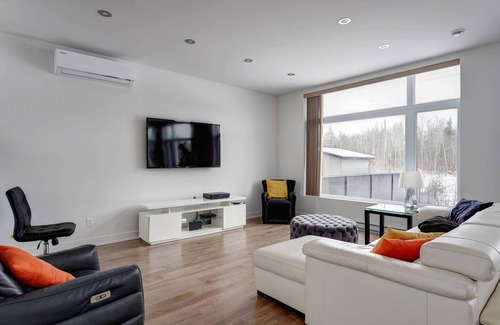 With its three bedrooms, this spacious sunny house allows you to contemplate a completely open space on the ground floor of a two-story apartment. You will be in the heart of a family neighborhood and the proximity of all services. In the new and prestigious sector of Mirabel, the apartment comfortably accommodates 6 people and allows you to discover the new adventures , in Montreal life. NETFLIX and CABLE included. Read our GUIDEBOOK!