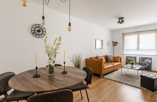Bright and cozy two-room apartment on the ground floor. The kitchen is equipped with dishes and appliances: fridge, microwave, dishwasher, oven and toaster. It consists of 1 bedroom with 1 double bed (queen size) and another bedroom with 2 single beds. The apartment is non-smoking and pets are not allowed. It has Wi-Fi and TV. It is also equipped with a hairdryer, iron and ironing board, clothes line and of course towels and bed linen throughout the stay. The house is at your complete disposal and we have taken care of every last detail to welcome you in a clean and comfortable space, whether you are staying for work or passing through the city. The parking is communal, it can be accessed directly from the elevator.