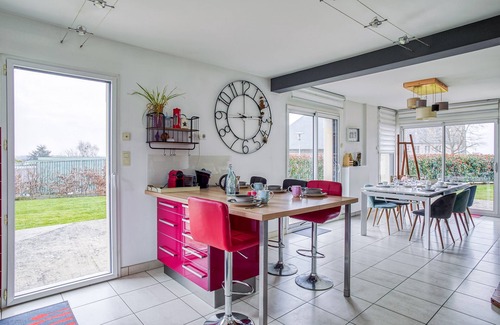 This bright and spacious house is located in a quiet and pleasant area, in the heart of the village of St Père with its typical Breton architecture. Its proximity to all amenities and various activities will allow you to spend a pleasant stay with family or friends.