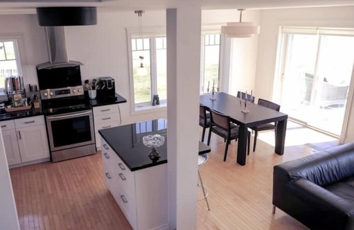 With a name inspired by Gabrielle Chanel's Côte d'Azur holiday home "La Pausa", our home is a luxury retreat for those seeking the best of what the Magdalen Islands have to offer. Situated on 7 acres (28,300 square meters) of oceanfront property, the home is solidly constructed from foot-thick concrete and therefore calm and serene, even during the fiercest winds. Our La Pausa is just a 10 minute drive from Café de la Grave, and all the excitement that the historic Havre Aubert neighborhood of La Grave has to offer. It is a short walk from Phare de l'Anse-a'-la-Cabane to the east and the white sand beach of Dune de l'Ouest to the west. Inside, we have equipped the home comfortably with Italian leather sofas, premium mattresses, and a fully equipped gourmet kitchen. Stay as long as you like, or enjoy a weekend getaway. Either way, one thing is for sure, you won't want to leave.