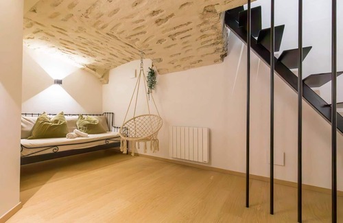 La pierre blanche is a lovely, cozy nest nestled on the first floor of a private mansion just a stone's throw from the market and Dijon's historic city center. Mainly laid out as a souplex and duplex, you'll need to go up and down to access the bedrooms and the main room. The upstairs bedroom is mainly reserved for children, given the high ceilings (an adult can't stand up). Small kitchenette in the entrance hall, but with all the essentials. Reserved for people who like very atypical accommodation. Double bed, sofa bed and two single beds upstairs. Television in all rooms. Wifi free of charge.